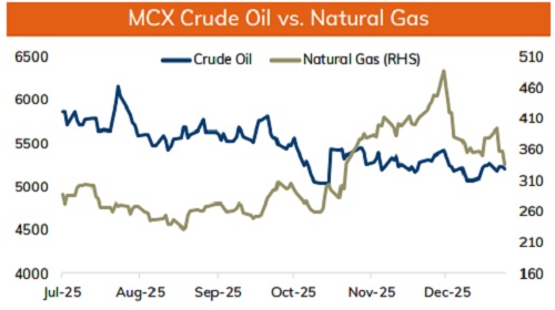 * Gold is expected to move in a tight range as most global markets will remain close for New year holiday. Prices would get support from increasing prospects of further monetary policy easing from the US Fed and safe haven buying. As per the CME Fed-watch tool March rate cut probability gone above 50%. Further, geopolitical uncertainty in Middle East and rising frictions between the US and Venezuela continue to underpin gold’s defensive appeal. In the domestic market gold prices move would depend on the USDINR.