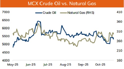 * On the data front, a strong put base at $60 strike indicates NYMEX crude to hold strong support. On the upside $65 call strike has higher OI concentration which may act as key hurdle. MCX Crude oil November is likely to find support near Rs.5250 and rebound towards Rs.5400. Only below Rs.5250 it would turn weaker towards Rs.5150,