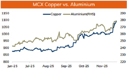 * Copper prices are expected to hold their gains and move higher amid concerns over supply shortage. These worries are heightened by depleting inventory levels in the LME, which have hit their lowest point since July. Furthermore, investors will remain cautious over growing speculation on higher import tariffs on refined copper by US in the coming year 2026. Meanwhile investors will eye on trade balance numbers from China and new loan numbers to get further clarity in price trend.