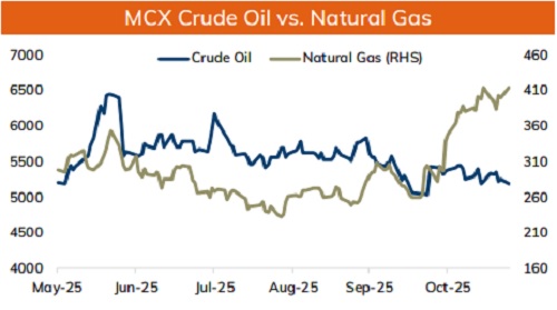 * Crude oil is likely to trade with negative bias and slip further towards $57.0 level on strong dollar, disappointing economic data from major economies and ease in geopolitical tension. Further, U.S. is trying to push to end war in Ukraine. End of war between Russia and Ukraine may lead to an end to sanctions on Russian energy exports, raising concerns over oversupply. Meanwhile, sharp fall may be cushioned as Russian President Vladimir Putin said that U.S. proposals for peace in Ukraine could be the basis of a resolution of the conflict but if Kyiv turned down the plan, then Russian forces would advance further. Additionally, investors are rising bets on December interest rate cut by the Federal Reserve. Lower interest rates could boost economic growth and oil demand