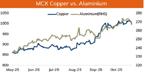 * MCX Aluminum Nov is expected to slip towards Rs 264 level as long as it stays below Rs 269.50 level. MCX Zinc Nov is likely to move south towards Rs 299 level as long as it stays below Rs 305.0 level