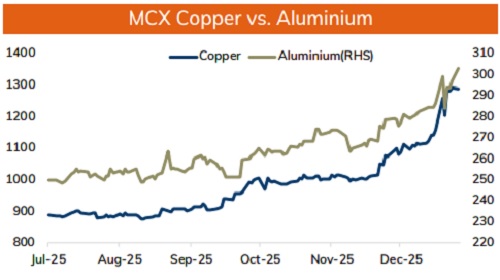 * Copper prices are expected to hold its ground and move higher, driven by a convergence of structural supply deficits and unprecedented demand from new-age industries. Production remains constrained by a major outage at Freeport's Grasberg mine in Indonesia and disruptions at Chile's El Teniente. Further, better than expected manufacturing activity from China would also bring optimism in prices. Rising copper premiums and planned output reduction for 2026 by China's leading copper smelters would support prices to move higher.