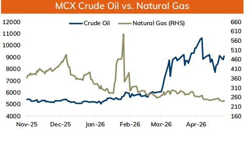 * NYMEX Crude oil is likely to trade with positive bias as hopes of diplomatic breakthrough is fading as efforts to revive talks stalled and both nations shows little sign of softening. US officials said President Donald Trump is not happy with the latest proposal from Iran to end the war, as it avoid addressing nuclear program. Additionally, prices may rally on supply concerns as shipping activity through the Strait of Hormuz, remained limited. Moreover, ceasefire between Israel and Lebanon looks fragile as Israel carried out strikes in eastern Lebanon. Further, investors will remain cautious ahead to policy decisions from key central banks this week, including the Fed, ECB, and BOJ