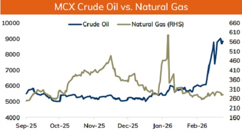 * MCX Crude oil April is likely to move in a broader range of Rs.8500 and Rs.9200. Only a move below Rs.8500 it would slip towards Rs.8200.