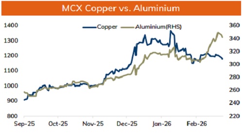 * MCX Aluminum March is expected to hold above Rs338 and rise towards Rs350 level. Prices are expected to remain higher due to supply disruption from the Middle east region.