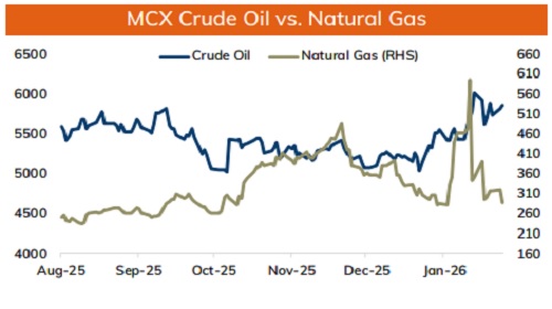 *NYMEX crude oil prices likely to rise further towards $65.50 level as long as it stays above $63. MCX Crude oil Feb is likely to rise towards Rs.6000-Rs.6050 level as long as it stays above Rs.5700 level.