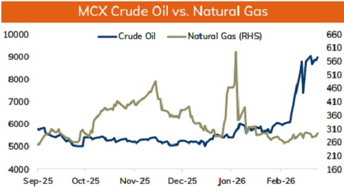 * MCX Crude oil April is likely to move in a broader range of Rs.8500 and Rs.9300. Only a move below Rs.8500 it would correct towards Rs.8200.