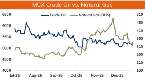 • MCX Natural gas Jan is expected to slip towards Rs 300 level as long as it stays below Rs 330 level.