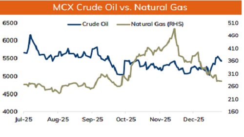 * MCX Crude oil Feb is likely to slip further towards Rs 5350-Rs 5300 level as long as it stays below Rs 5500 level.