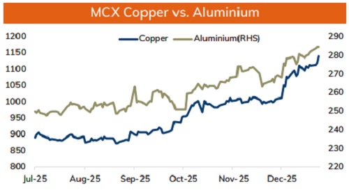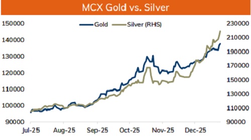 * Spot Gold is expected to trade higher and move towards $4580 per ounce on weaker dollar and growing prospects of more rate cuts from the US Federal Reserve. As per the CME Few-watch tool March rate cut probability has remained above 45%, whereas January rate cut probability dipped to 14%. Further, expectation of sluggish growth in the US labor market would force the Fed members to support loose monetary policy. In addition to that, safe haven appeal and central bank buying would also support prices to trade higher. For the day, spot gold is likely to hold support at $4470 and move higher towards $4550 per ounce. Only a move above $4550 per ounce it would rise towards $4600 per ounce.