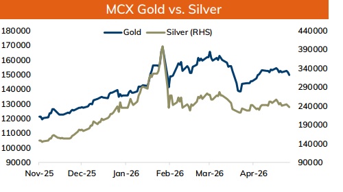 * Spot Gold is likely to slip towards $4500 level amid firm dollar and rise in US treasury yields. Further, prices may slip as stalled peace talk between US and Iran and ongoing blockage in Strait of Hormuz, refueled concerns over rising inflation and monetary tightening across major economies. Investors are pricing possibilities that central banks may keep rate elevated for longer or may even increase it. Moreover, Iran and US, both are blocking the waterway to gain leverage during extended ceasefire, disrupting oil supply and keeping prices at elevated level. Additionally, investors will keep an eye on US Federal Reserve monetary policy meeting outcome. More focus will be on statement to get cues on interest rate trajectory.