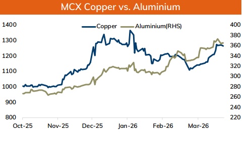 * Copper prices are expected to trade with positive bias amid improved economic data from US and soft dollar. Further, prices may move up on rise in risk appetite in the global markets after US President Donald Trump said he would indefinitely extend ceasefire with Iran, easing concerns over imminent escalation in tension. Moreover, prospect of stronger demand in China would be supportive for the prices. Yangshan copper premium, a gauge of China's appetite for imported materials, stood at $68 a ton, signaling demand. Furthermore, Gulf supply disruptions and China's planned sulfuric acid export restrictions will impact metal industry as its essential for some copper extraction. Meanwhile, rising inventory at LME registered warehouses would weigh on prices. MCX Copper April is expected to rise towards Rs.1275 level as long as it stays above Rs.1255 level. A break above Rs.1275 level prices may be pushed towards Rs.1282- Rs.1290 level