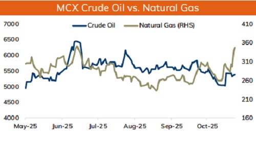 * On the data front, a strong put base at $55 would act as strong support. On the upside a strong call base at $60 would act as major hurdle. MCX Crude oil Jan is likely to hold support at Rs 5200 and move higher towards Rs5380 level. Only move above Rs 5380 it would rise towards Rs 5460.