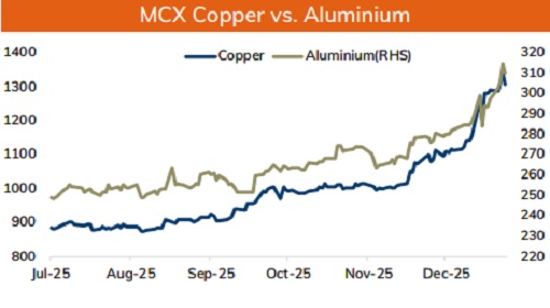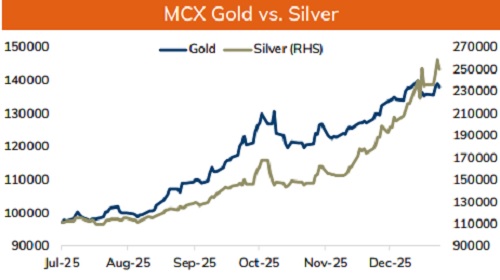 * Spot Gold is likely to trade with the positive bias and rise back towards $4500 level on softening of US treasury yields across curve. Further, recent batch of economic data showed weakness in labor market condition, strengthening bets of Federal Reserve rate cut. Additionally, demand for safe haven may continue to rise on escalating geopolitical tension. US has seized Russian-flagged vessel in North Atlantic linked to Venezuelan oil. Furthermore, White House separately confirmed discussions about acquiring Greenland, including potential military involvement. Moreover, prices may rally on strong central bank demand for gold. China's central bank extended its gold-buying streak to a 14th straight month in December