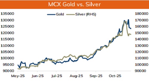 • Spot gold is likely to face hurdle near $4150 and move lower towards $4050. MCX Gold December is expected to face resistance at Rs 124,500 level and move back towards Rs 121,500 level.