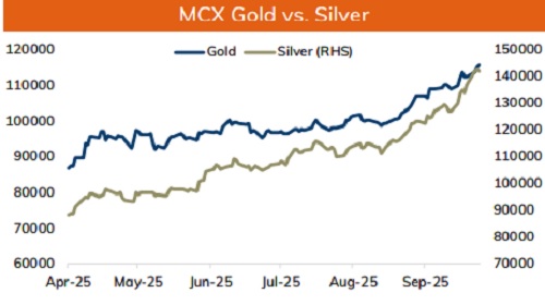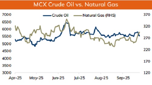 • Crude oil is likely to remain under pressure on expectation of another output hike form OPEC+ from November. OPEC in its upcoming meeting is likely to announce an increase in November output to reclaim its market share. Additionally, fears over US Government shutdown and expectation of sluggish job growth numbers would weigh on oil prices. Furthermore, any sign of Gaza peace deal could ease uncertainty and improve oil supplies from the Middle East. On the other hand, supply concerns from Russia on fears over sanction from NATO nations could limit its downside. Additionally, drawdown in API crude oil inventories would provide support to stay above $61 per barrel mark.