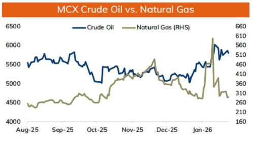 • MCX Natural gas Feb is expected to slip towards Rs.270 level as long as it stays below Rs.308 level. A break below Rs.270 level prices may fall towards Rs.260 leve