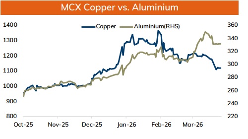 * MCX Aluminum April is expected to hold above Rs.330 and rise towards Rs.340 level.
