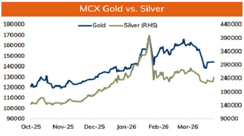 * MCX Gold June is expected to move in a wide range of Rs150,000 and Rs155,000. Only a move above Rs155,000, it would rise towards Rs157,000. On the other hand, if prices break below Rs150,000, then we may see prices to slip towards Rs148,000