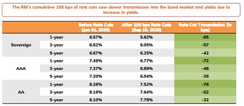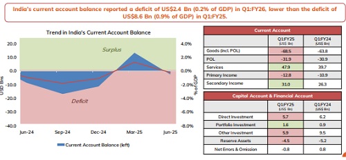 The RBI delivered a 50 bps policy rate cut in June 2025, followed by an announcement of 100 bps reduction in the Cash Reserve Ratio (CRR). Adding to the supportive backdrop, S&P upgraded India’s sovereign rating to BBB from BBB-, while headline inflation fell to an eight-year low of ~1.55%.