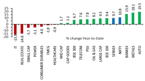 While Nifty has delivered double-digit gains this year, performance across sectors and market capitalizations has been mixed.