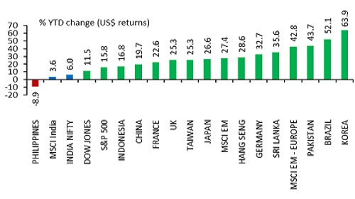 India has stayed an underperformer this year amidst expensive starting valuations and weak earnings.
