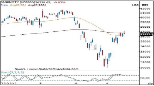 Going ahead index sustaining above last Wednesday gap up area of 55600 will keep the bias positive and will gradually open upside towards 57,800 levels in the coming sessions being the previous breakdown area and key retracement of previous decline .