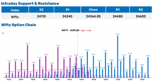 * Gradual Put writing at 24,300-24,400 is reinforcing a near-term support base. However, a decisive breach below 24,300 could invite fresh downside pressure.