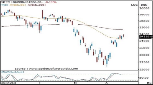 Going ahead index sustaining above last Wednesday gap up area of 23850 will keep the bias positive and will gradually open upside towards 24 ,700 - 24 ,800 levels being the confluence of the 200 days EMA and the 61.8% retracement of the entire decline 26 ,373 to 22 ,183.