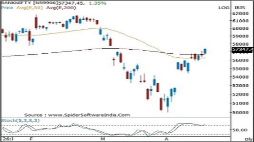 Bias remain positive above last Wednesday gap up area of 55 ,600 - 55 ,850 . Index is expected to maintain positive bias and gradually head towards 57,800 and 58 ,500 levels being the previous breakdown area and key retracement of previous decline . Volatility is likely to remain high on account of the geopolitical tension and volatile crude oil prices
