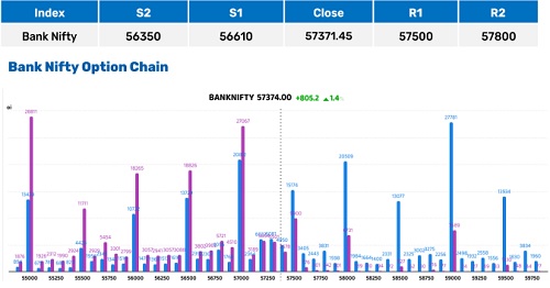* As long as this level holds, declines may be considered buying opportunities. Immediate resistance is placed at 57,500, where limited call writing exists; a decisive move above this level could trigger an upside extension toward 58,000.