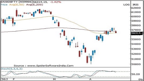 Bank Nifty in the last two sessions witnessed profit booking after rallying more than 7500 points in just 3 weeks which has pushed the daily and weekly stochastic oscillators into overbought territory . Hence, some consolidation at current level cannot be ruled out. We expect the index to consolidate in the range of 54 ,000 - 57,500 .