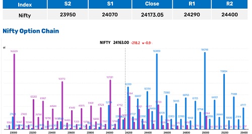 * The immediate deciding range for Nifty is 24,000 –24,200, and a breakout on either side may trigger a directional move.