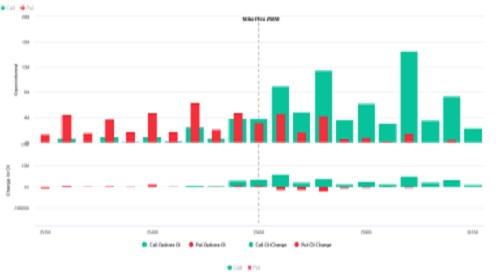 • Maximum Call OI is at 26000 then 26500 strike while Maximum Put OI is at 25500 then 25000 strike.