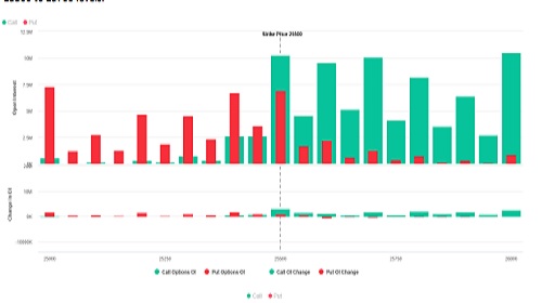 * Option data suggests a broader trading range in between 25000 to 26000 zones while an immediate range between 25300 to 25700 levels