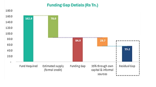 An additional 5% of the funding gap is expected to be met through informal sources, while around 30% will be supported by promoters’ own capital infusion. Despite these sources, according to B2K Analytics, the unmet funding requirement for MSMEs is estimated at Rs 55.18 trillion by 2030.