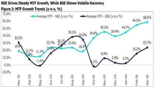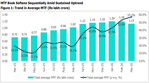 * MTF book remained relatively small in comparison and recorded a 23.7% y-o-y increase in March 2026, while volumes saw a marginal m-o-m decline of 0.9%.