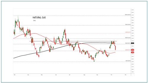 Data showed an 80 bcf build in natural gas storage for the week ending October 3, above market expectations of 77 bcf