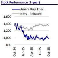 We met with the management team of Amara Raja to get an update on the business. In the lead-acid business, 1) OE demand has picked up after GST rate cuts, while replacement is yet to pick up; 2) lead costs, excl. currency depreciation, remain stable QoQ; 3) the tubular battery plant can drive 300-400bp margin improvement for that segment; 4) the recycling plant can help save costs by 30-40bp; 5) power cost is likely to remain elevated for one more quarter before stabilizing. In the New Energy business, 1) the combined investment for the first gigafactory (2GWh), the R&D plant and the customer qualification plant stands at INR25b (invested INR12b so far and will invest the balance in the next 12 months); 2) based on their progress, Amara would decide on further funding avenues for the entire project cost of about INR60-70b for 16GWh capacity; 3) this business can deliver 10-11% EBITDA margin at a scale of about 10 GWhr; 4) apart from Ather Energy, which has partnered with Amara for its cell requirements, Amara is currently working on few other RFQs. While the market is optimistic about Amara’s li-ion initiative, we are cautious about its potential returns. We maintain a Neutral rating with a TP of INR1,030, based on 18x Jun’27E EPS.