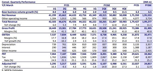 * We expect GP margin expansion of 170bp YoY to 42.5% on deflation in RM prices. EBITDA margin expected to improve 120bp YoY to 16.7% given higher operating costs.