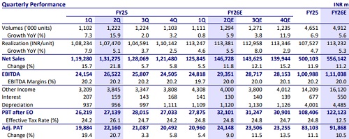 * Total volumes grew ~6% YoY, supported by ~24% growth in exports even as domestic volumes declined ~5% YoY. While 2W sales grew 3% YoY, 3W sales were up ~20% YoY. Thus, product mix for BJAUT is favorable for 2Q.
