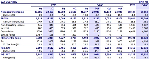 * Standalone PAT is expected to decline 13% YoY in 2Q.