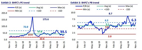 While 3Q is likely to be similar to 2Q, we expect the demand environment to start improving from 4Q onward. We factor in BHFC to post a CAGR of 11%/14%/28% in revenue/EBITDA/PAT over FY25-28E. However, despite factoring in all the positives, the stock trading at 54x/38x FY26E/FY27E consolidated EPS appears fairly valued. We reiterate our Neutral rating with a TP of INR1,290 (based on 32x Sep’27E consolidated EPS).