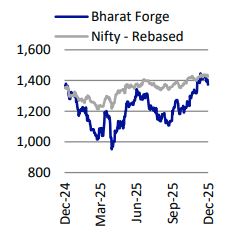 We met BHFC management to understand the outlook for its key segments. Defense is likely to be a key growth driver for BHFC given that it now has an order backlog of ~INR114b to be executable over 3-4 years and it has developed capabilities across multiple platforms like ATAGs and carbines and across military and naval applications. The outlook for its aerospace segment is strong as it targets to cross INR3.5b in revenue in FY26 (from INR2.5b in FY25) and the momentum is likely to remain intact going ahead. However, the outlook for US CVs remains weak and is likely to revive only by 2HCY26. While domestic CV OEMs have seen good offtake in the last couple of months, there are no clear signs of a sustainable uptick in MHCV demand in the coming quarters yet. In overseas subsidiaries, a material performance improvement is contingent on the outcome of its restructuring initiatives, which would be clear by 4QFY26. We estimate BHFC to deliver a CAGR of 11%/14%/28% in revenue/EBITDA/PAT over FY25-28. However, despite factoring in all the positives, the stock trading at 54x/38x FY26E/FY27E consolidated EPS appears fairly valued. We reiterate our Neutral rating with a TP of INR1,290 (based on 32x Sep’27E consolidated EPS).