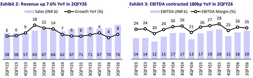 * Cipla’s 2QFY26 revenue increased 7.6% YoY to INR75.9b.