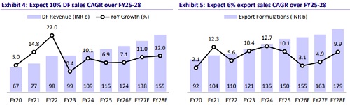 * We cut our earnings estimates for FY26/FY27/FY28 by 1%/6%/6%, factoring in 1) higher R&D expenses over the near-to-medium term, 2) a limited scope of NA business growth in FY27 due to a higher base of g-Revlimid in FY26, and 3) the moderation in acute therapy growth in the Domestic Formulation (DF) segment.