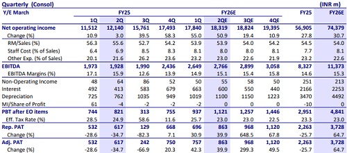 * Consolidated margins to largely remain stable QoQ at 15.1% as bulk of the expected margin improvement came in 1Q.