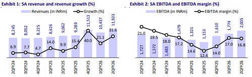 * Sunbeam reported revenue of INR3.3b in 2QFY26. EBITDA margins currently stand at 6%. While revenue is likely to remain stable in FY27, management will now focus on improving efficiencies in this business and hence expects EBITDA margin to improve to double digits by FY27.