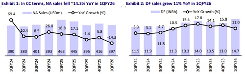 * North America sales declined for the first time in 16 quarters in 1QFY26, partly due to volatility in sales of certain products and rising competition in g-Revlimid.