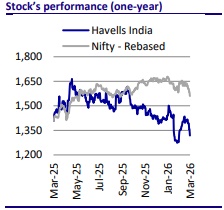 * Demand trends in HAVL’s key product segments are mixed. Infrastructure-linked B2B segments, such as cables and switchgear, have shown steady growth, while other consumer durables have faced seasonal weakness and inventory destocking. The company expects increasing competitive intensity in the wires segment due to the entry of new players. In addition, the recovery in the RAC segment warrants monitoring, given the upcoming summer season, the ability to pass on higher input costs, and competitive intensity.